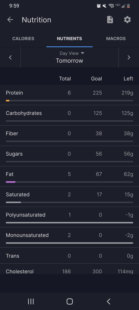 Pay attention to how your macronutrients fit in your diet. There are some pre-sets; so be sure to look through the Macros section to customize your diet to your specific needs!!